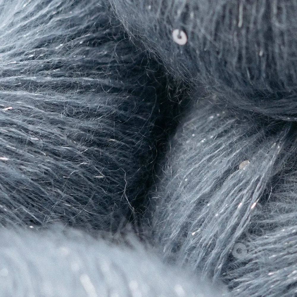 - Lang Yarns Mohair Fancy — 38% супер кидмохер, 35% шерсть, 18% шелк, 5% полиэстер, 4% нейлон, 140м/25гр. Нежное облачко с невероятной красоты пайетками.