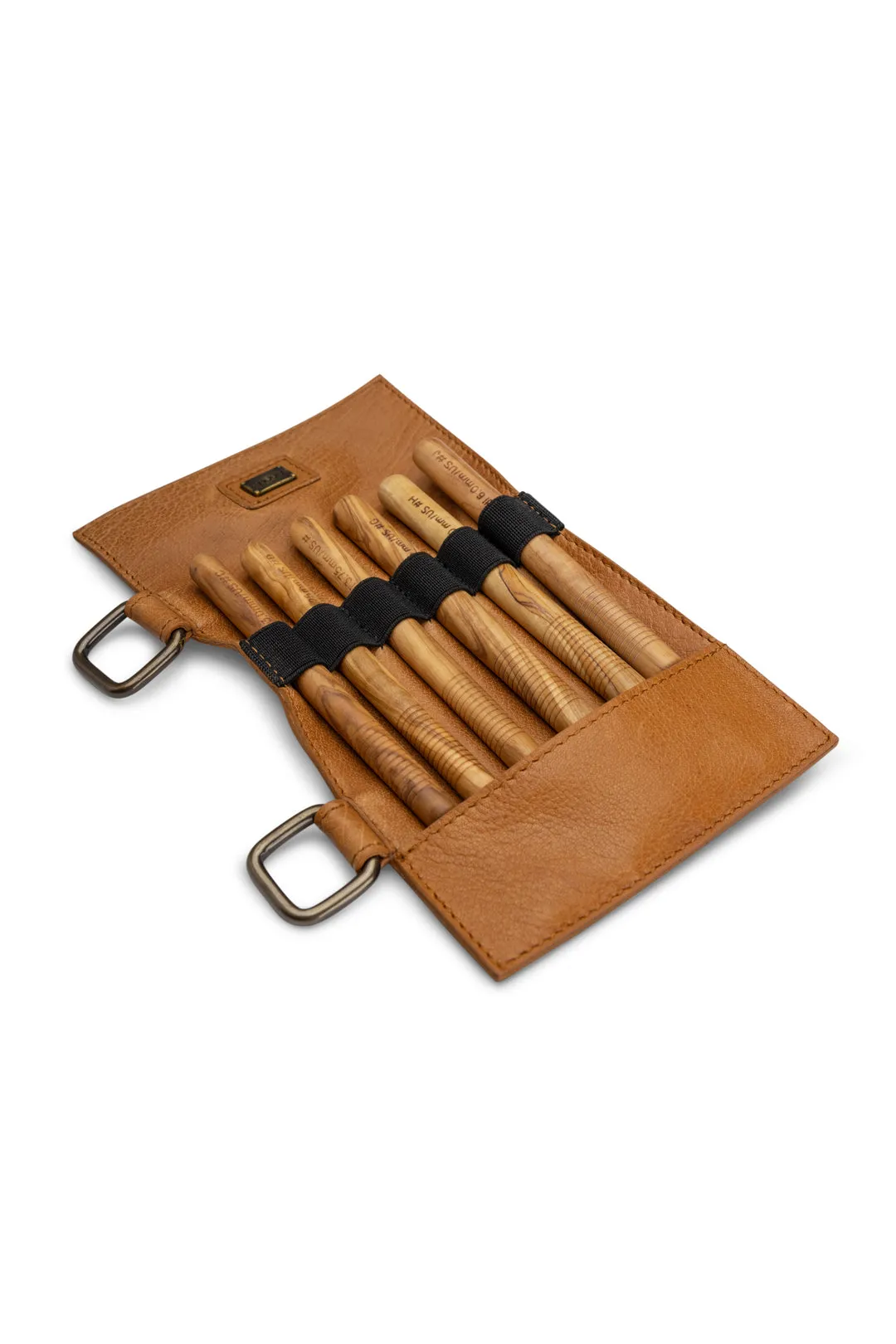 Этот элегантный кожаный чехол сочетает в себе стиль и функциональность в одном изделии. Carita E оснащен специальными отделениями для хранения ваших крючков для вязания. Чехол также оснащен двумя металлическими кольцами, которые можно прикрепить к чехлу Carita для надежного крепления.