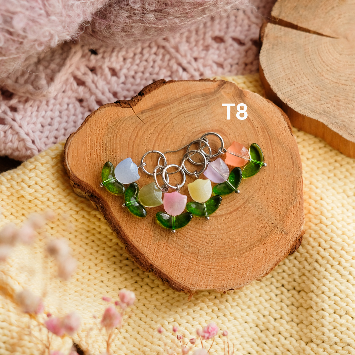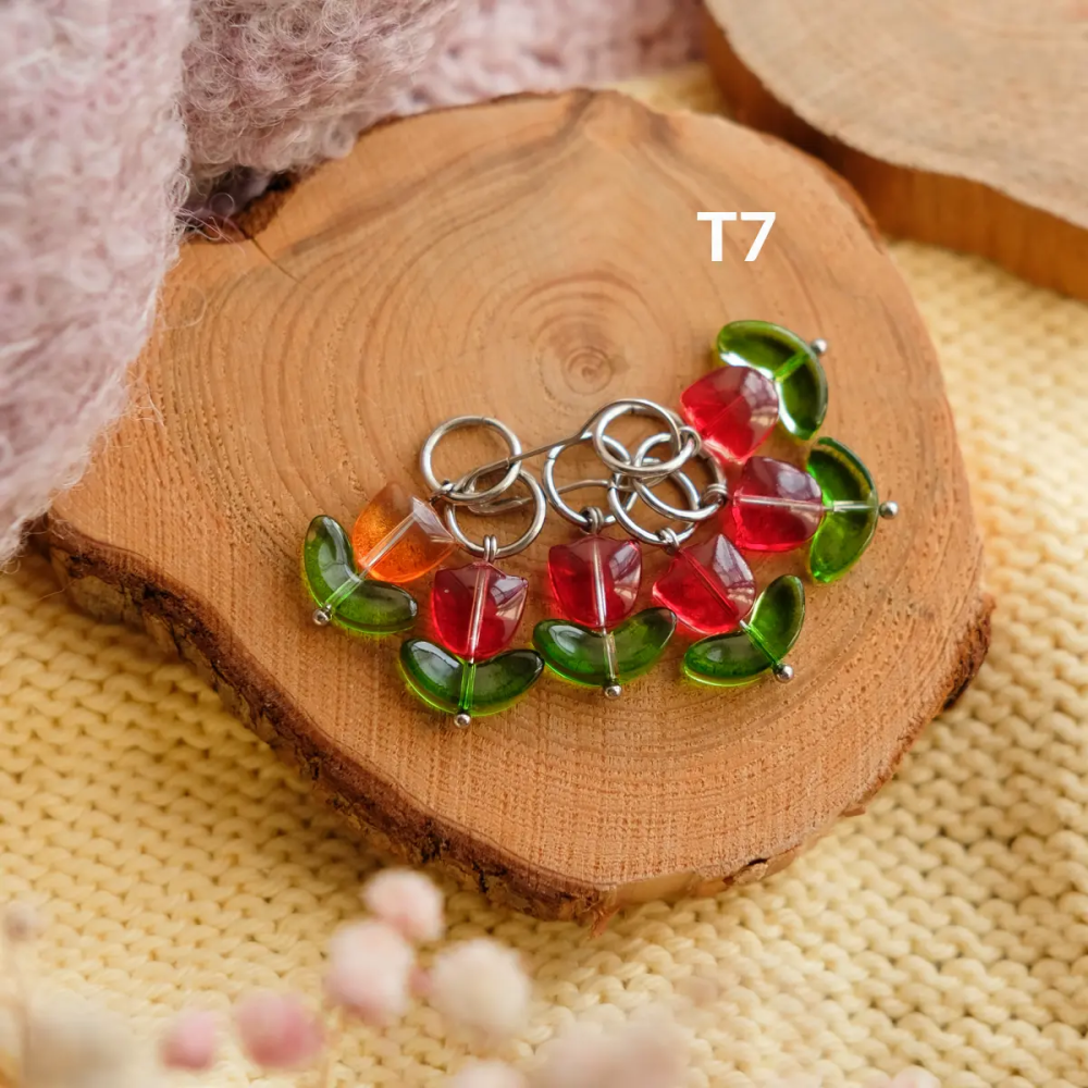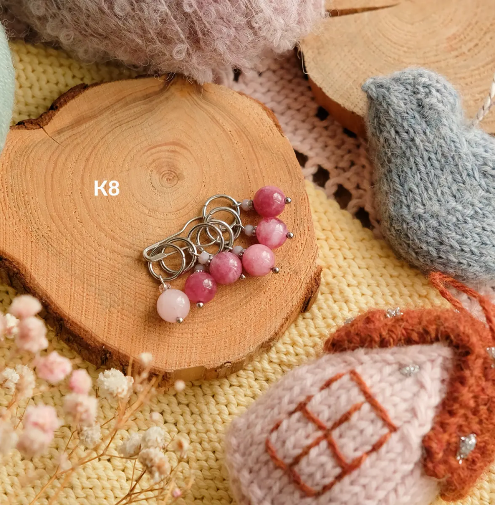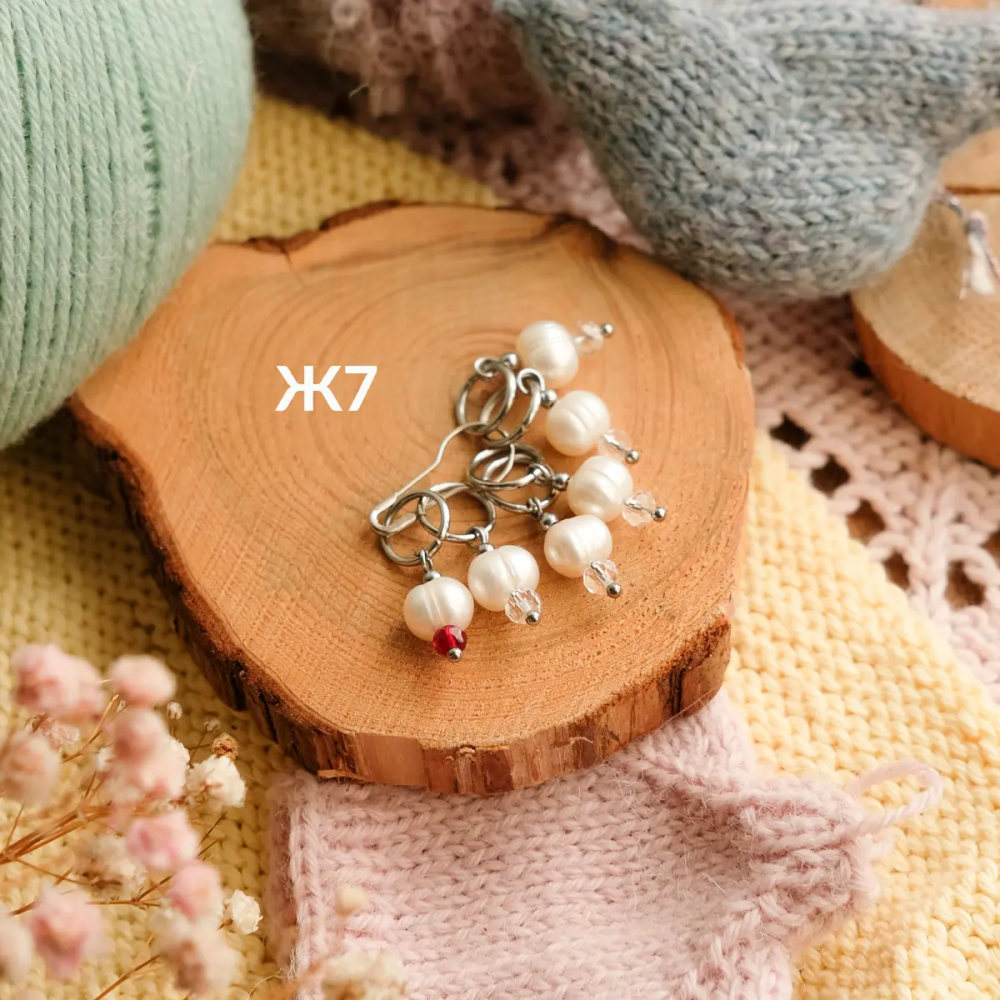 Диаметр колечка 7 мм, подходят для спиц до 6,5 мм. Легко надеваются и снимаются, не мешают работе и аккуратно держатся на спице. Отличный подарок вязальщице и полезная мелочь для любого проекта — от шапок до свитеров.