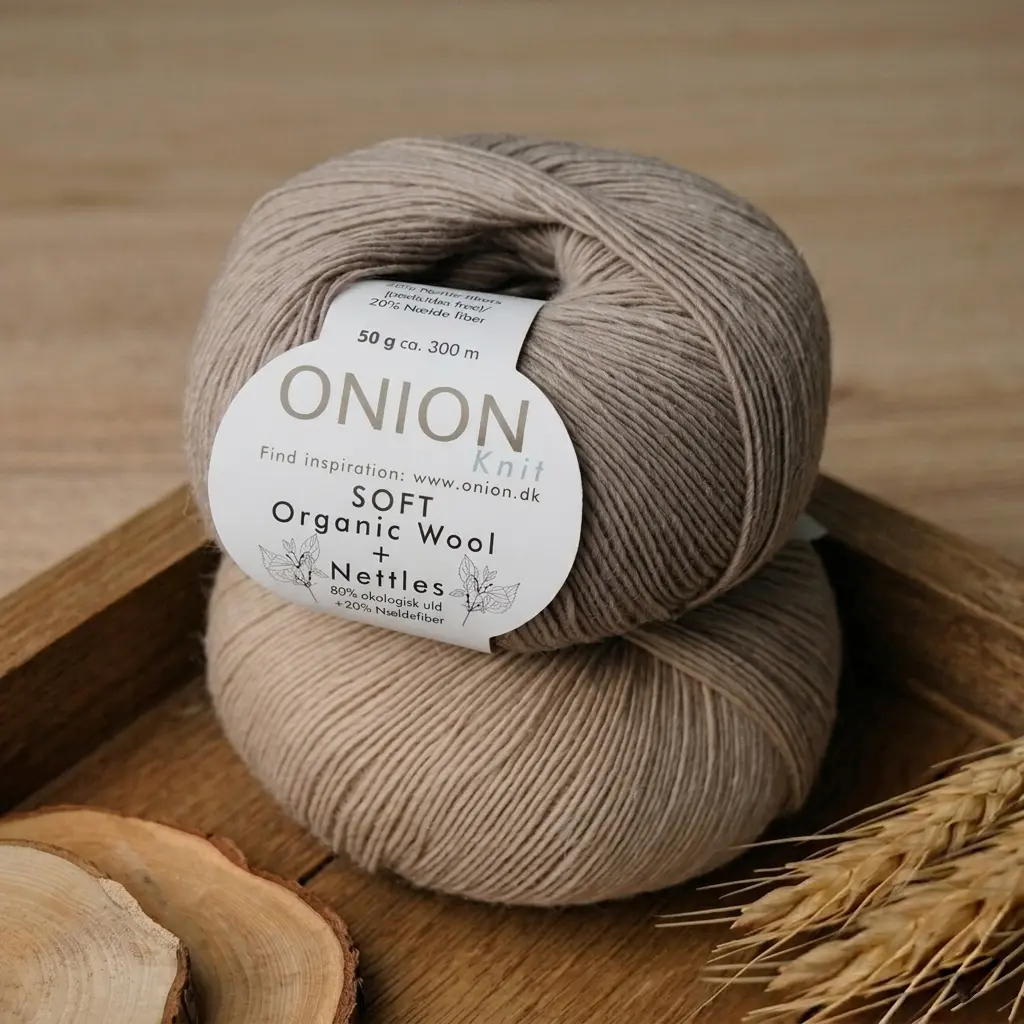 Откройте для себя невероятно мягкую и ультралегкую пряжу Onion Soft Organic Wool + Nettles — идеальный выбор для тех, кто ценит комфорт, натуральность и экологичность. Эта тоненькая ровничная нить сочетает в себе 80% органической шерсти и 20% волокон крапивы, выращенной без использования пестицидов.