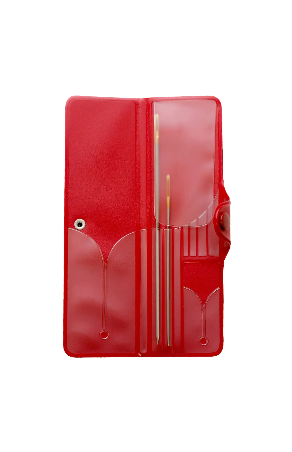 Иглы надёжно хранятся в стильном и компактном пластиковом чехле с кнопкой-застёжкой — вы всегда сможете взять набор с собой на занятие или хранить аксессуары в порядок дома. Внутренние карманы футляра подходят для хранения других мелких инструментов для рукоделия.