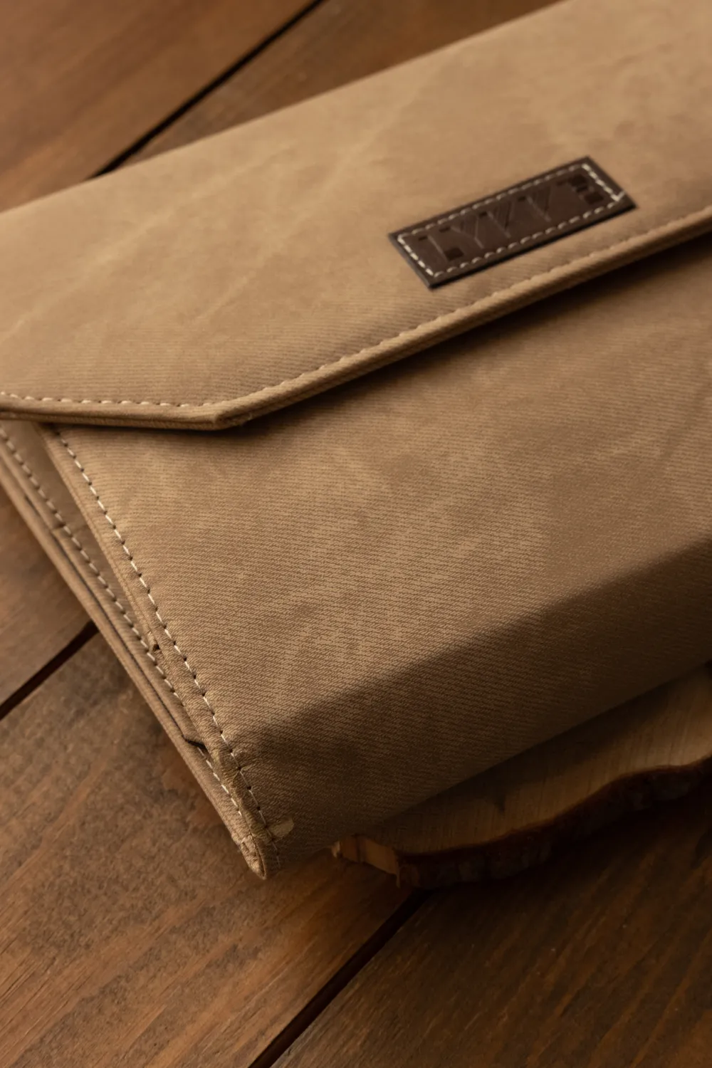 Украшает набор безупречный чехол. Текстиль янтарного цвета снаружи дополнен черным бархатом внутри.