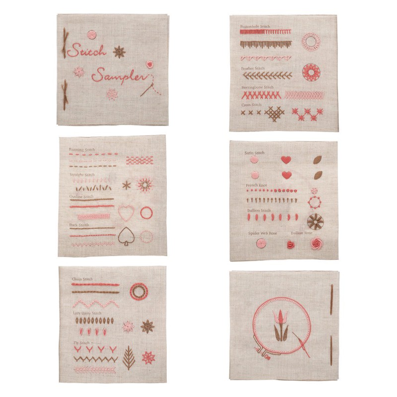 Наборы для вышивания "15 базовых стежков" созданы для тех, кто хочет научиться вышивать или освежить свои навыки. В наборе представлен обучающий материал с 15 основными видами стежков, выполненными на ткани с нанесённым мотивом. Это отличный старт для начинающих и удобный справочник для опытных мастеров.